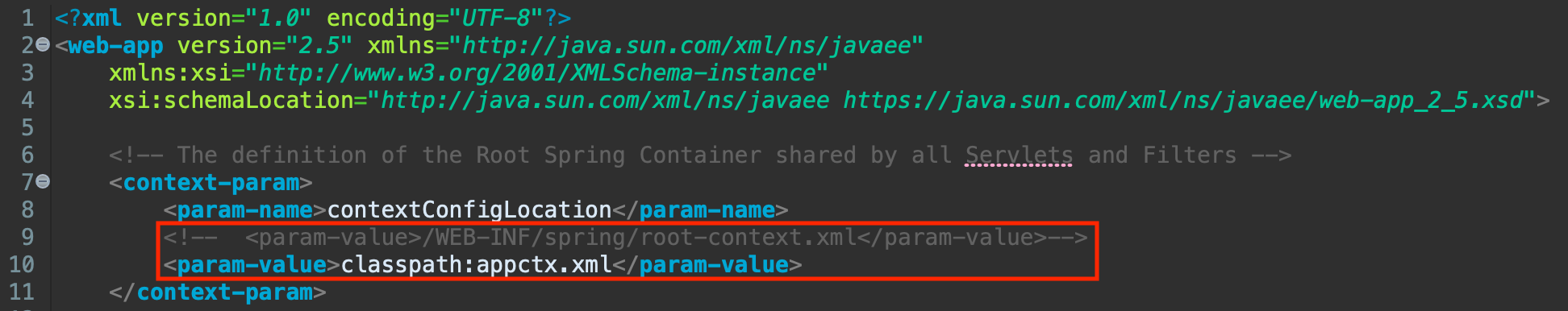 <param-value>classpath:appctx.xml</param-value> 로 변경해준다.