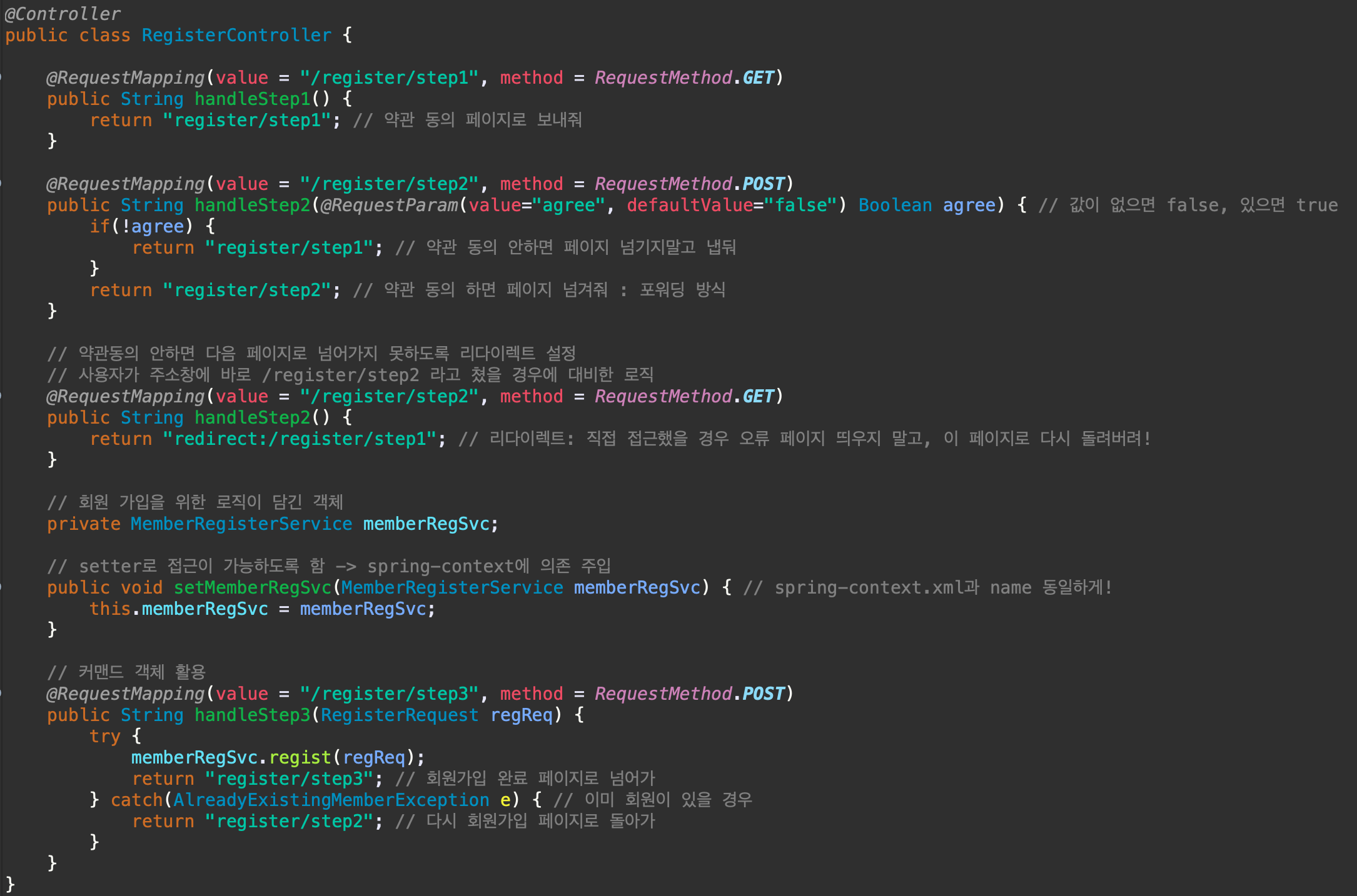 <property name="memberRegSvc" ref="memberRegSvc"/> <!-- 의존 주입 추가 -->
