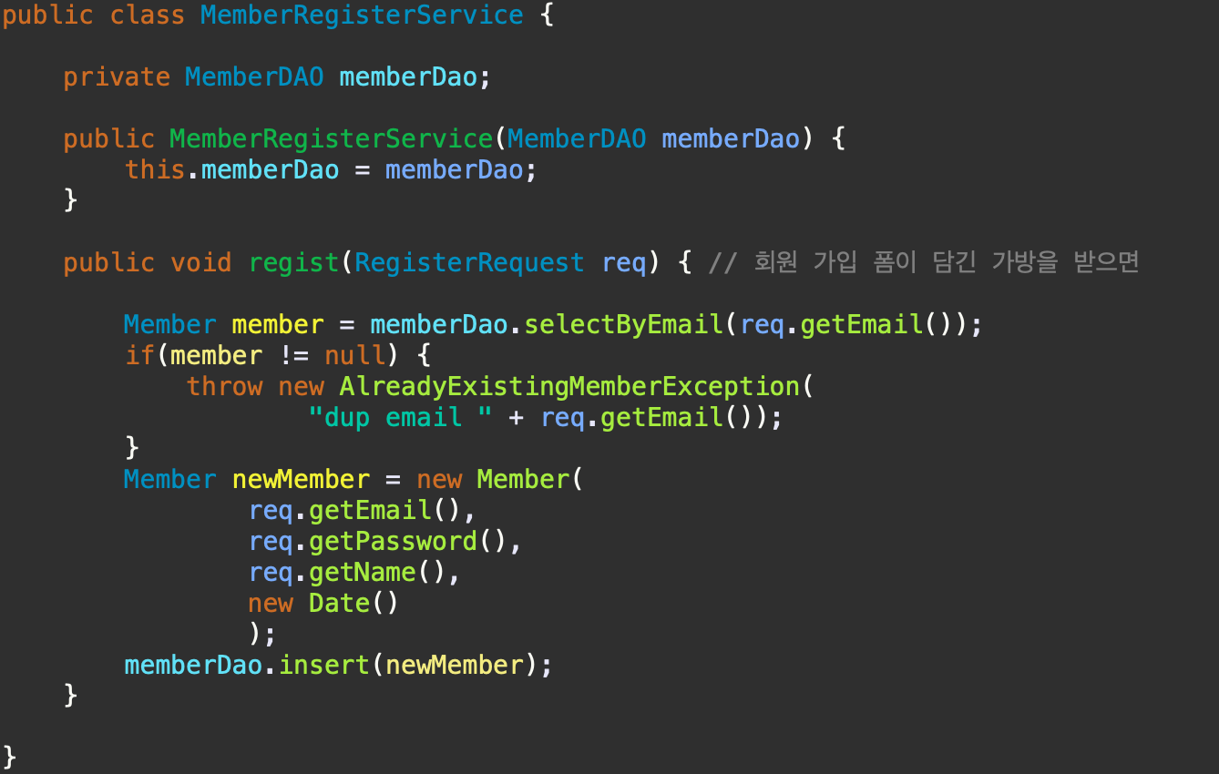 2. MemberRegisterService 클래스 / RegisterRequest 클래스