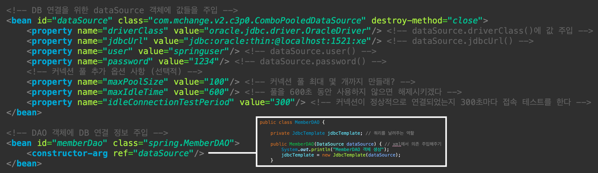 DB 접속 정보를 객체에 저장하고, 그 객체를 DAO에 전달