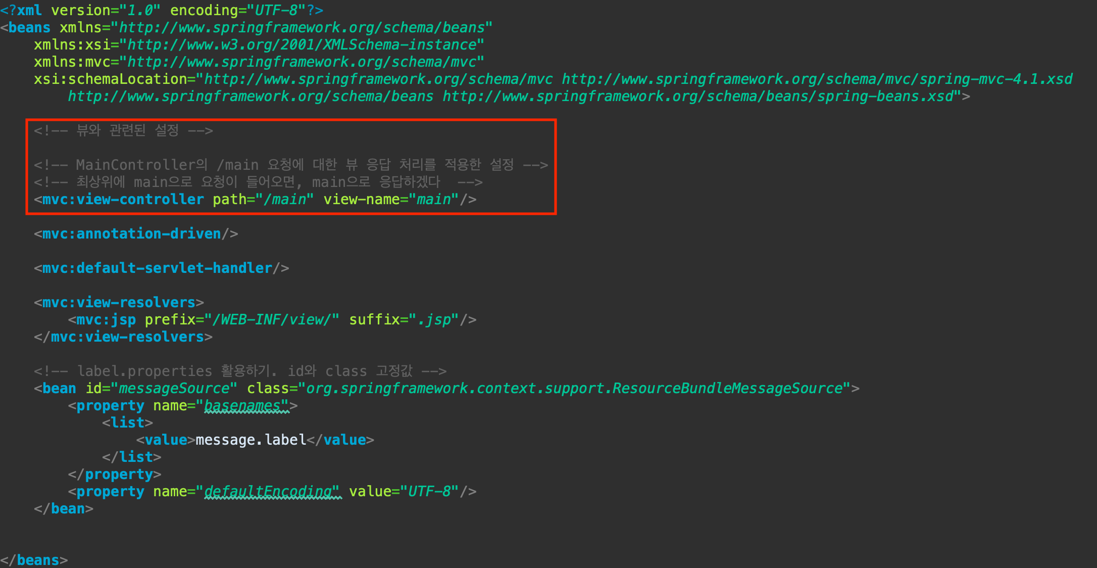 뷰와 관련된 설정을 다루는 xml 설정 파일에서 아래 태그를 추가한다.