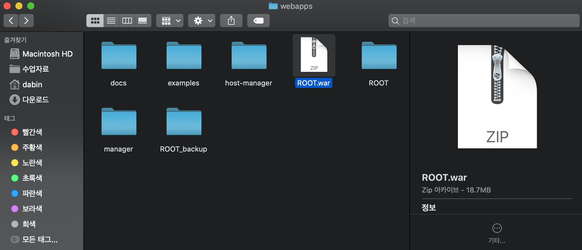2. ROOT.war 파일을 톰캣 폴더에 넣어주기
