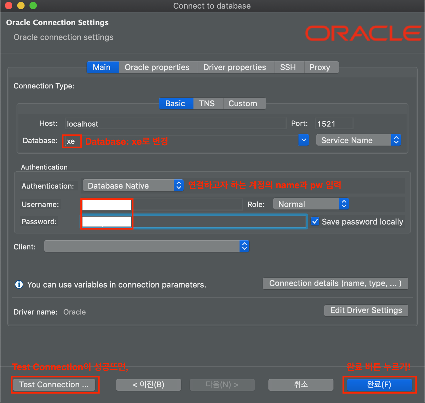 + 첫 연결이라면 Edit Driver Settings를 눌러 아래와 같이 설정해주자.
