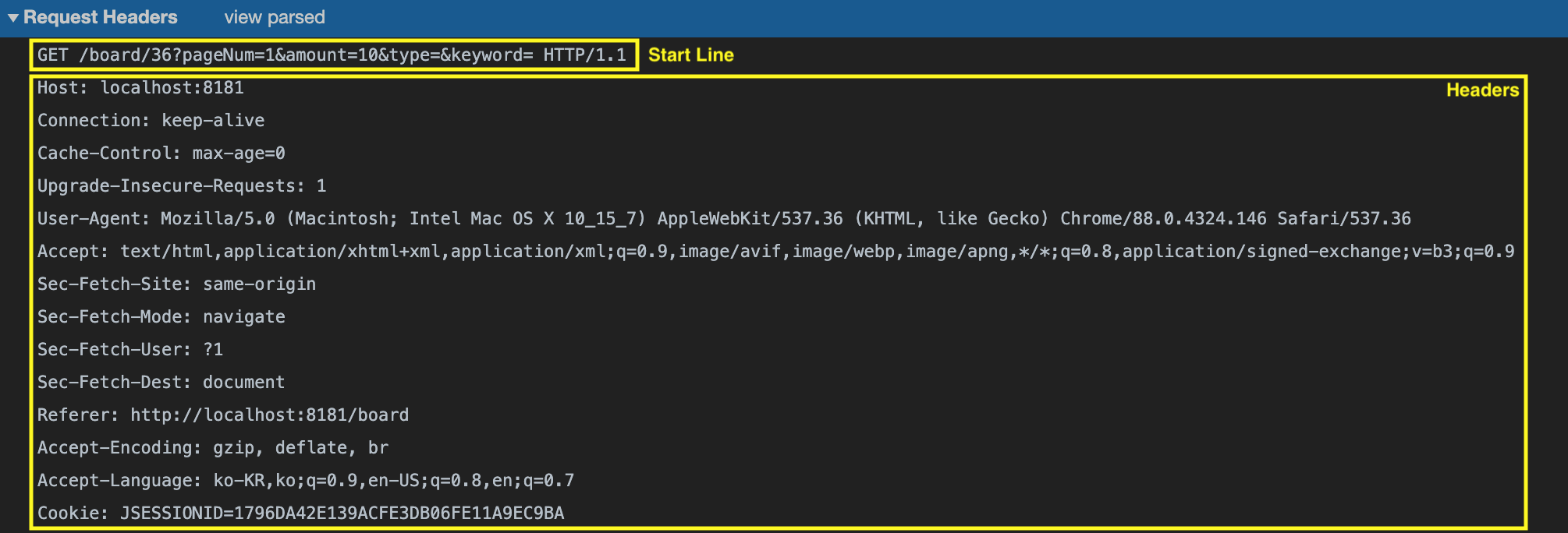 Start Line + Headers + body로 구성