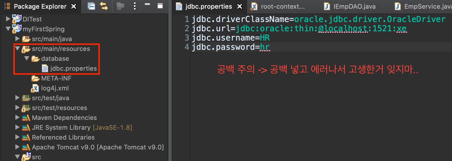 - src/main/resources 아래에 database 폴더 만든 후 내부에 jdbc.properties 파일 생성