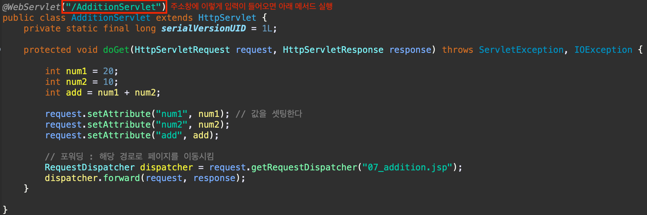 * 서블릿 클래스에서 두 수에 대한 합을 구해 JSP에서 출력하기