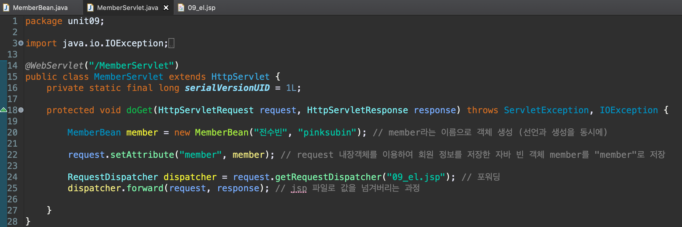 하지만, EL은 형변환을 할 필요가 없기 때문에 코드가 간결해짐