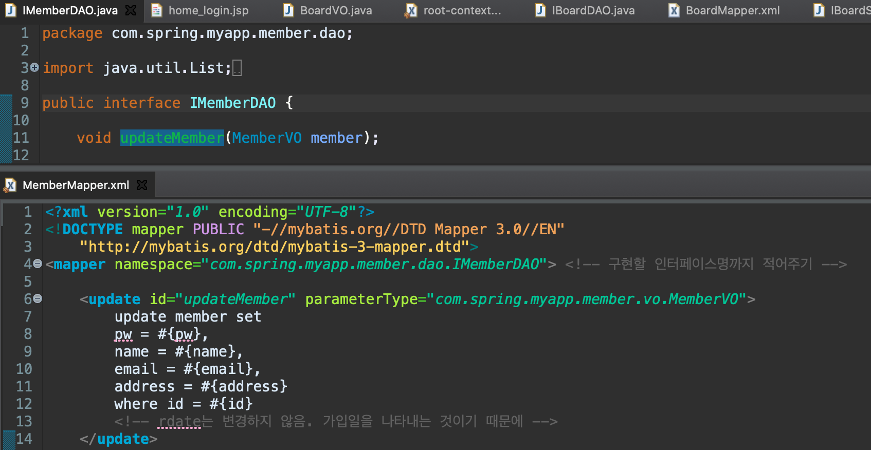 1. IMemberDAO 인터페이스 / MemberMapper.xml 구현