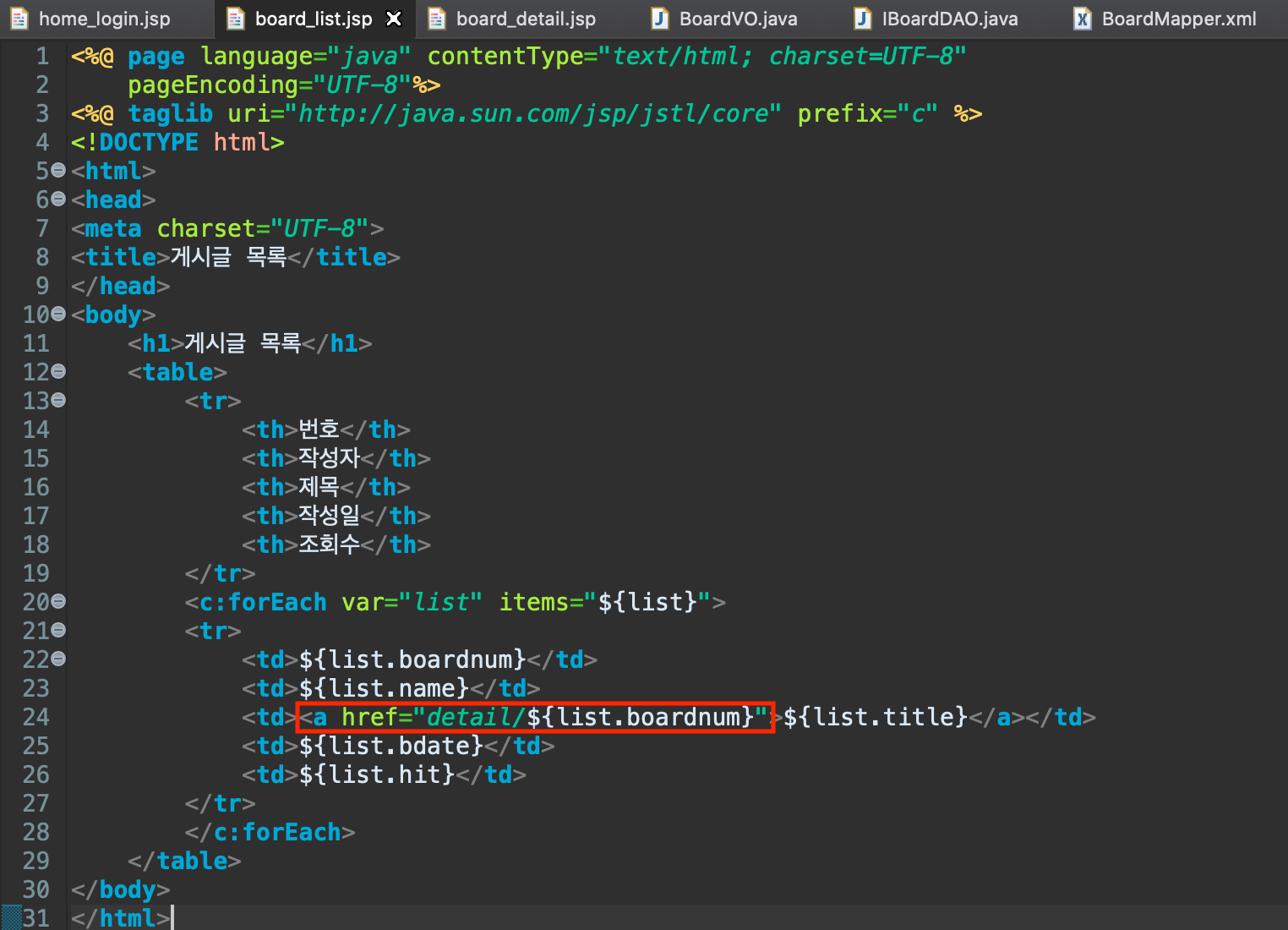 7. ${list.boardnum} 로 표현할 수 있음