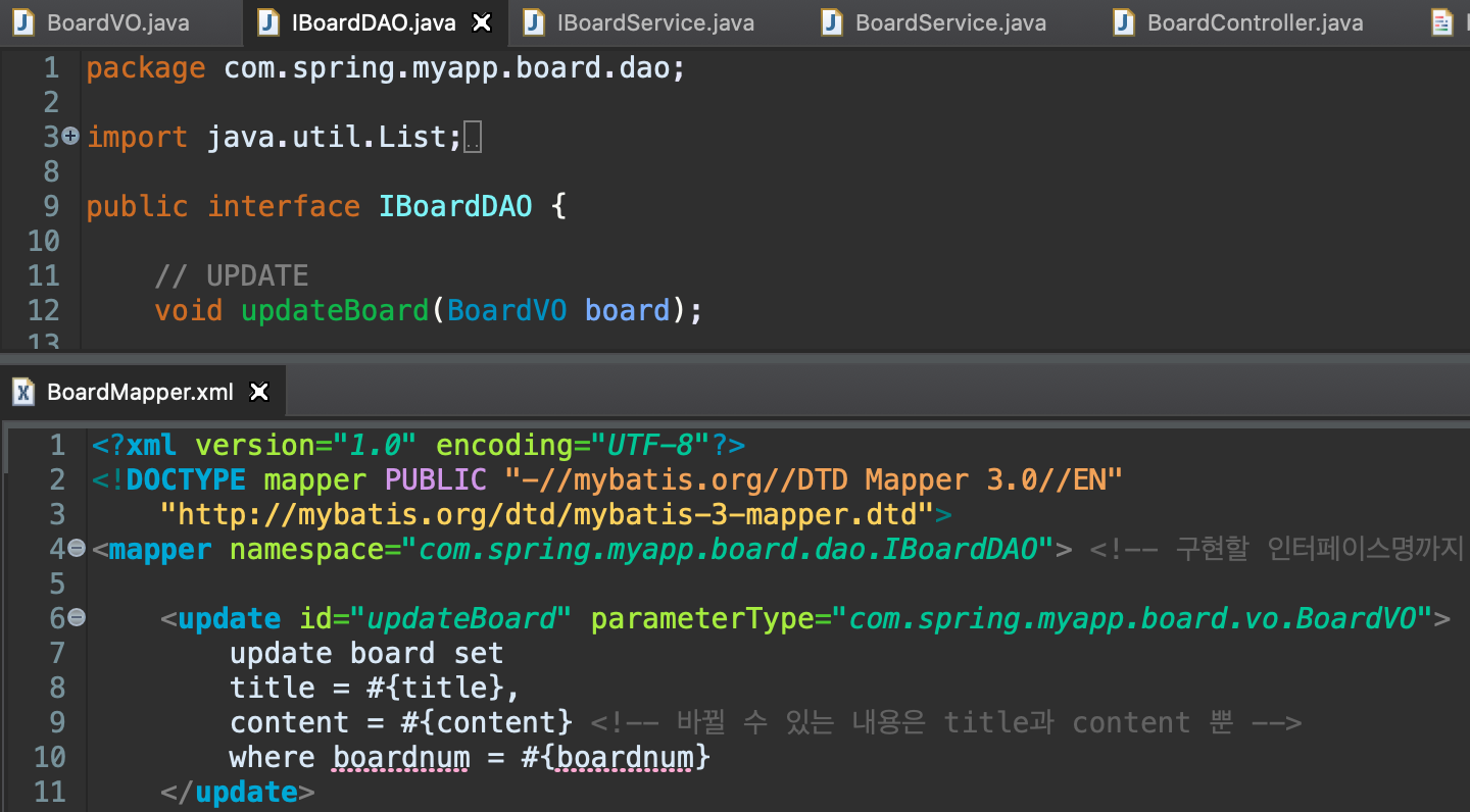 1. IBoardDAO 인터페이스 / BoardMapper.xml 구현