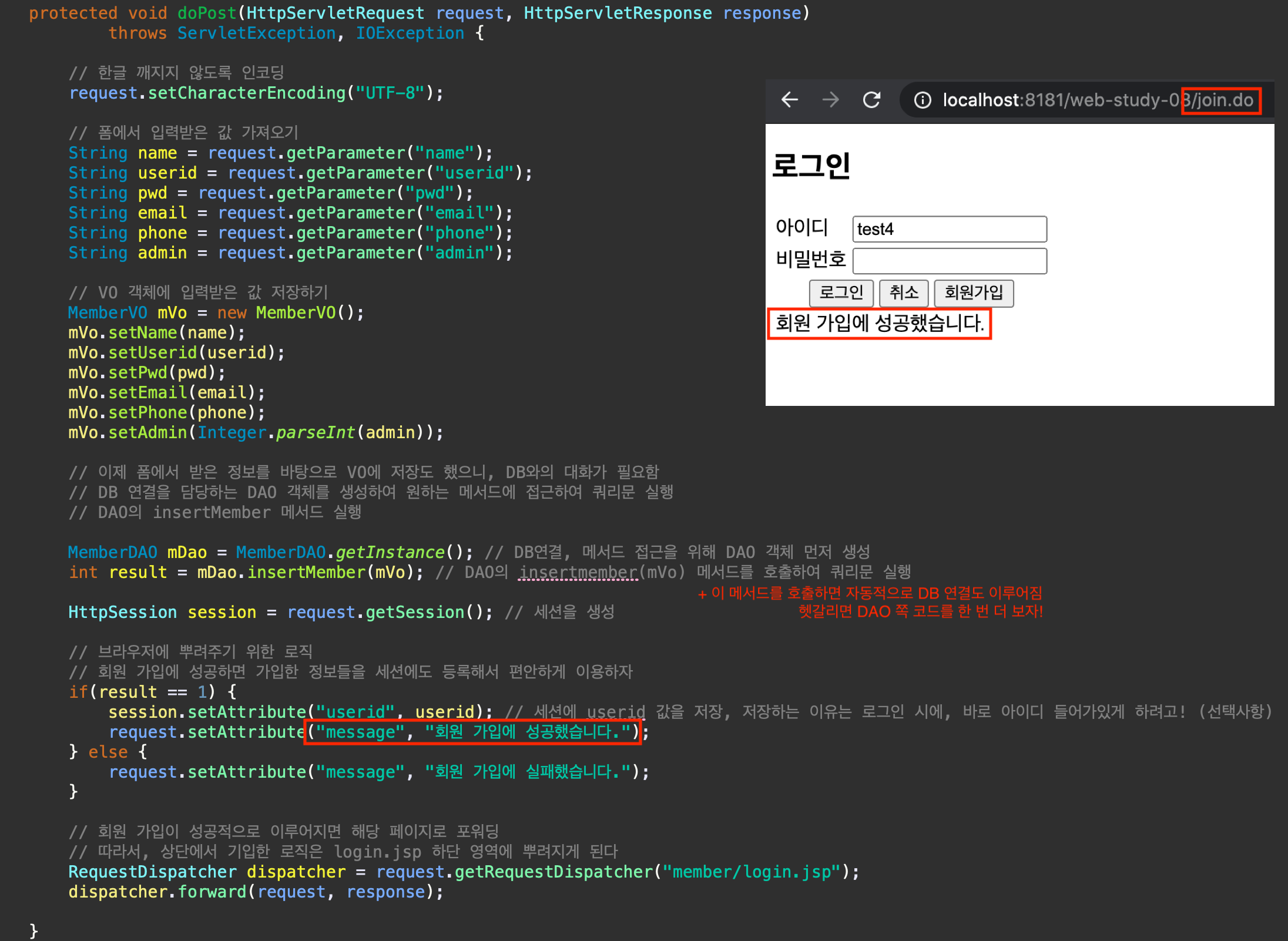 6. JoinServlet 파일의 doPost() 메서드 작성