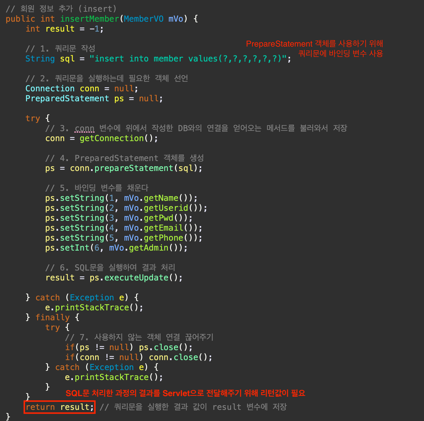 - 그리고, 어떤 일을 하기 위해 = 메서드를 실행하기 위해 = 쿼리문을 실행한 결과를 얻기 위해