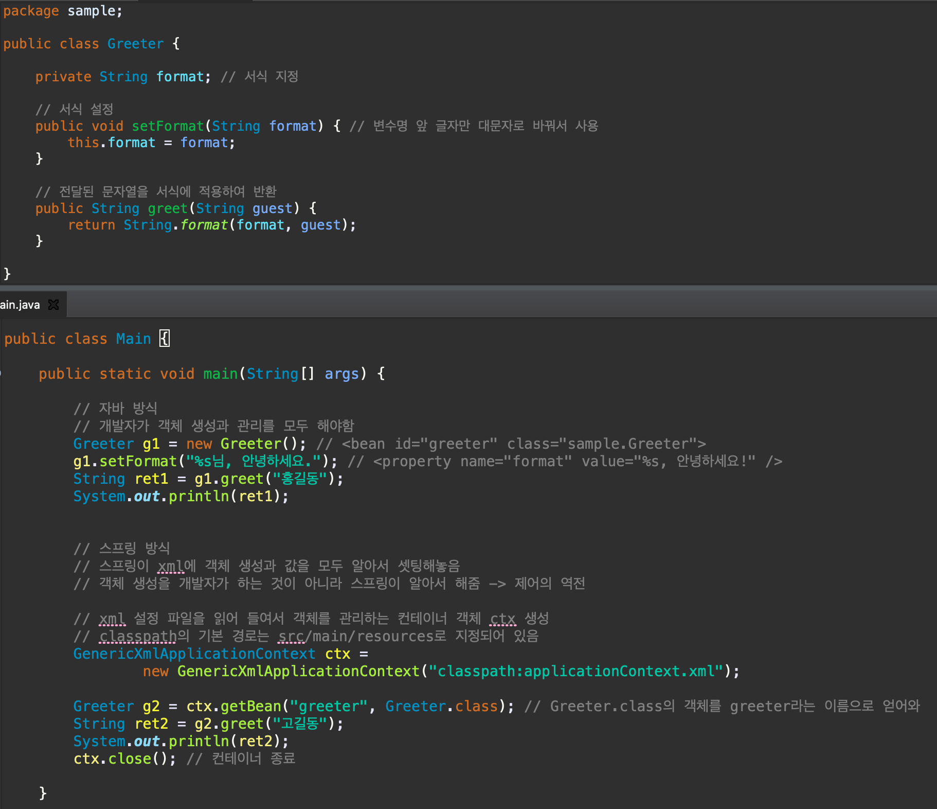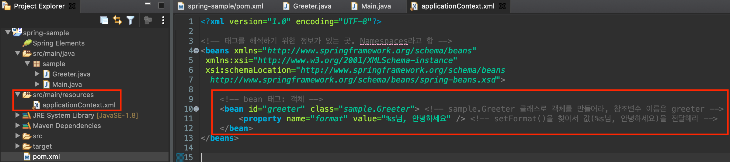 - xml 설정 파일을 읽어 들여서 객체를 관리하는 컨테이너 객체
