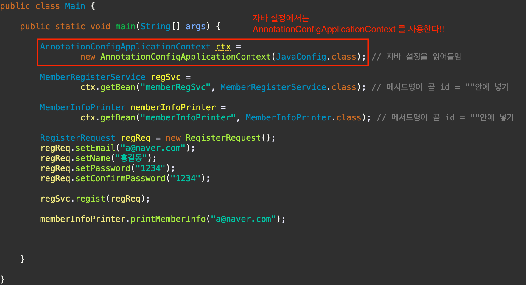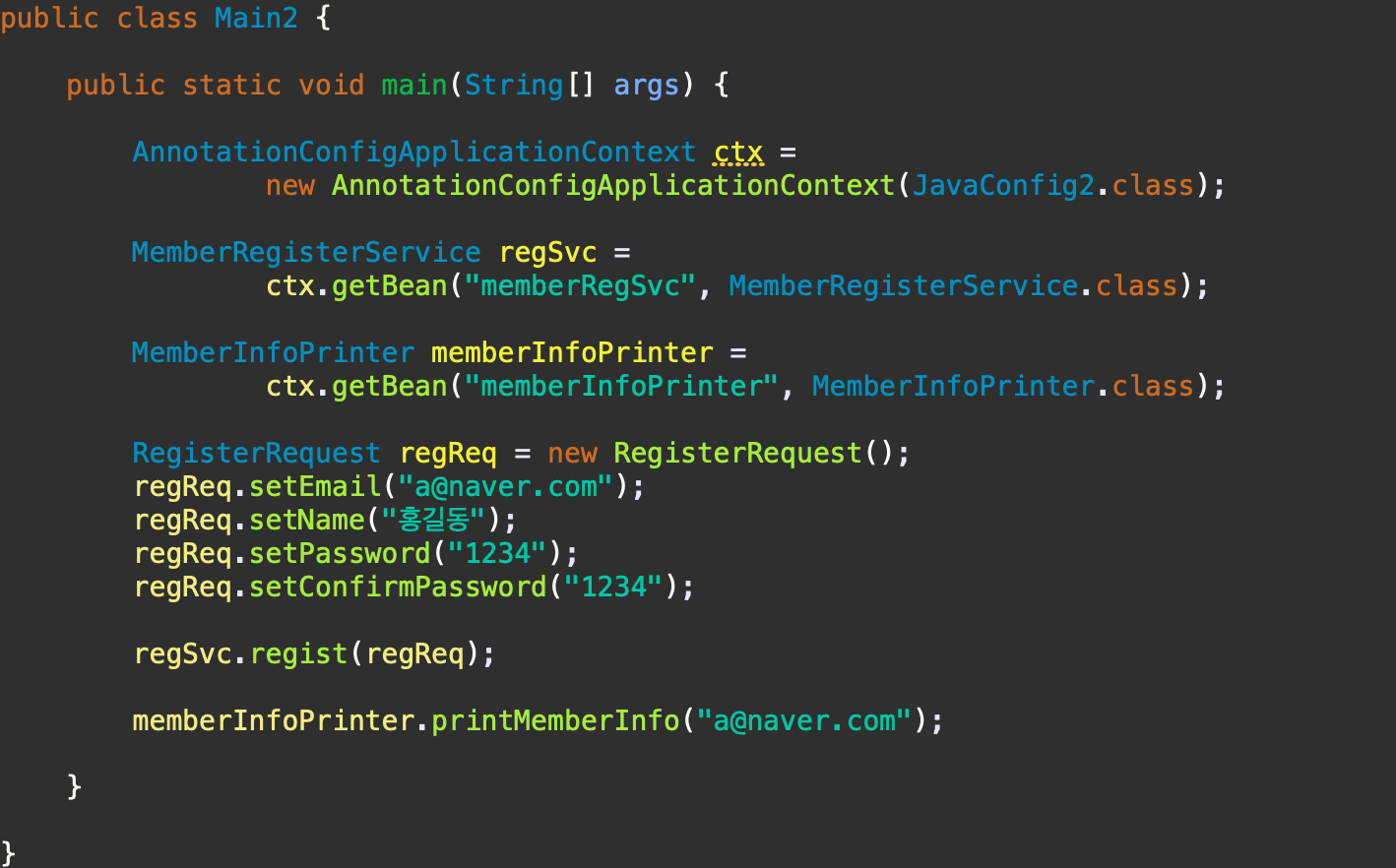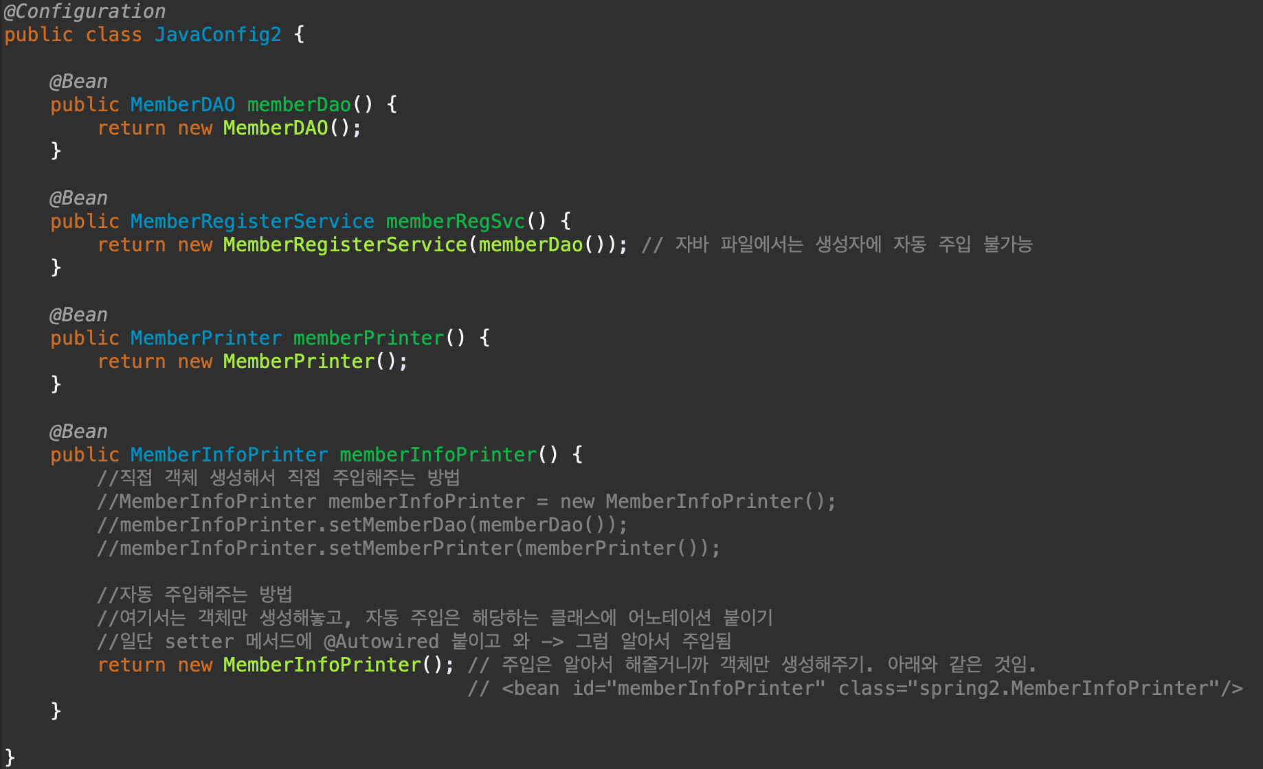 <bean id="memberInfoPrinter" class="spring.MemberInfoPrinter"/>