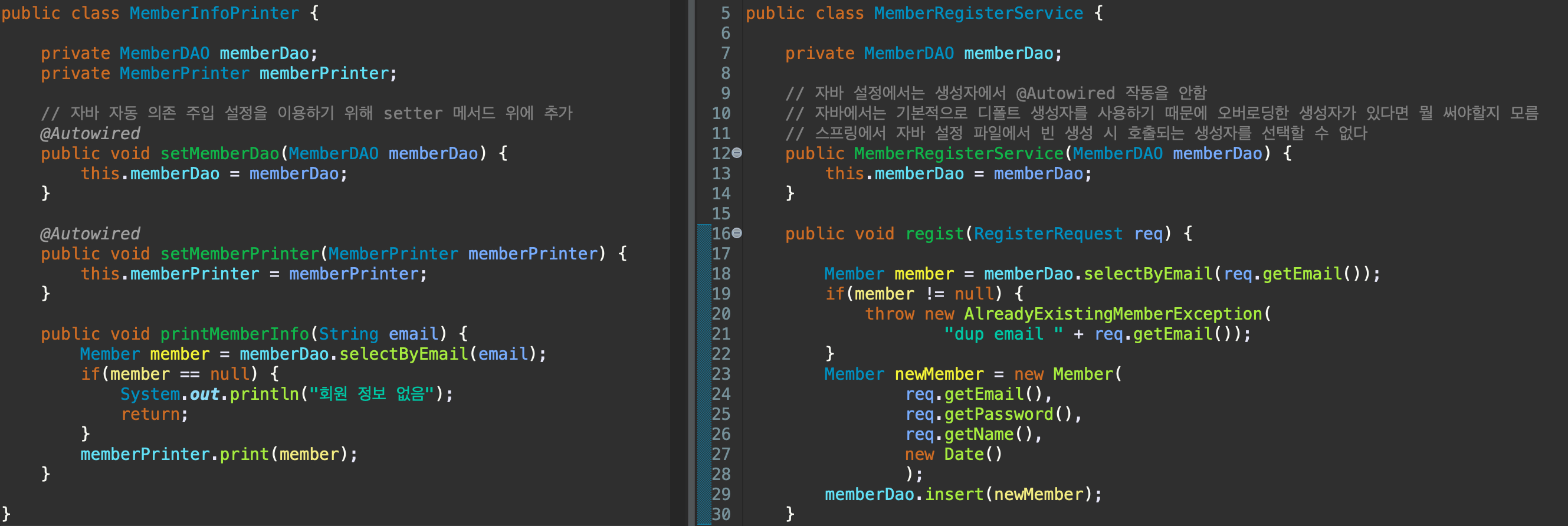 자동 주입은 @Autowired 어노테이션을 사용했던 것 기억하지?