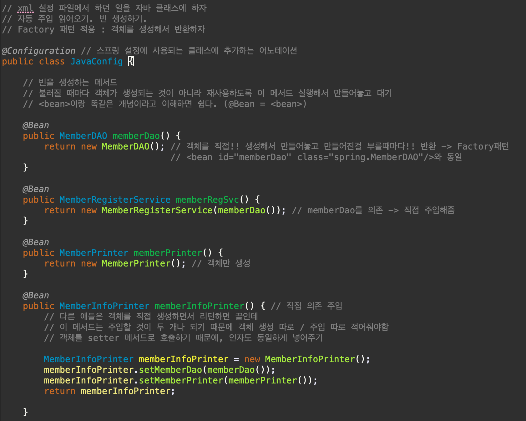 <bean id="memberInfoPrinter" class="spring.MemberInfoPrinter">