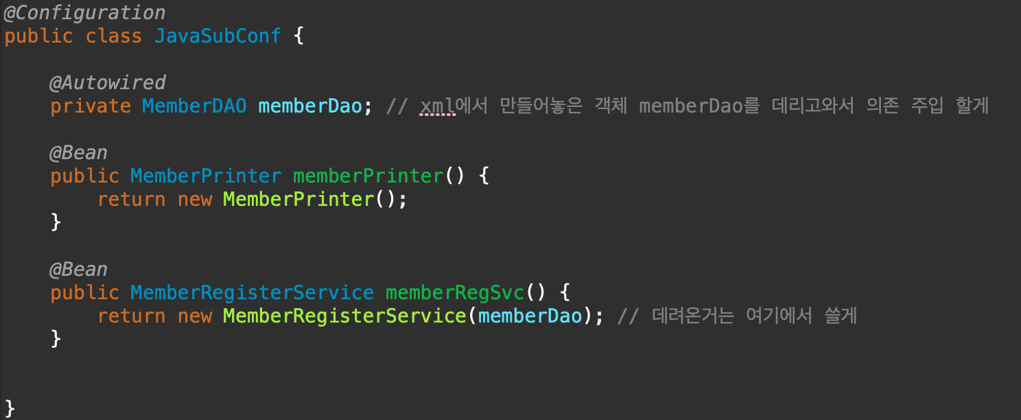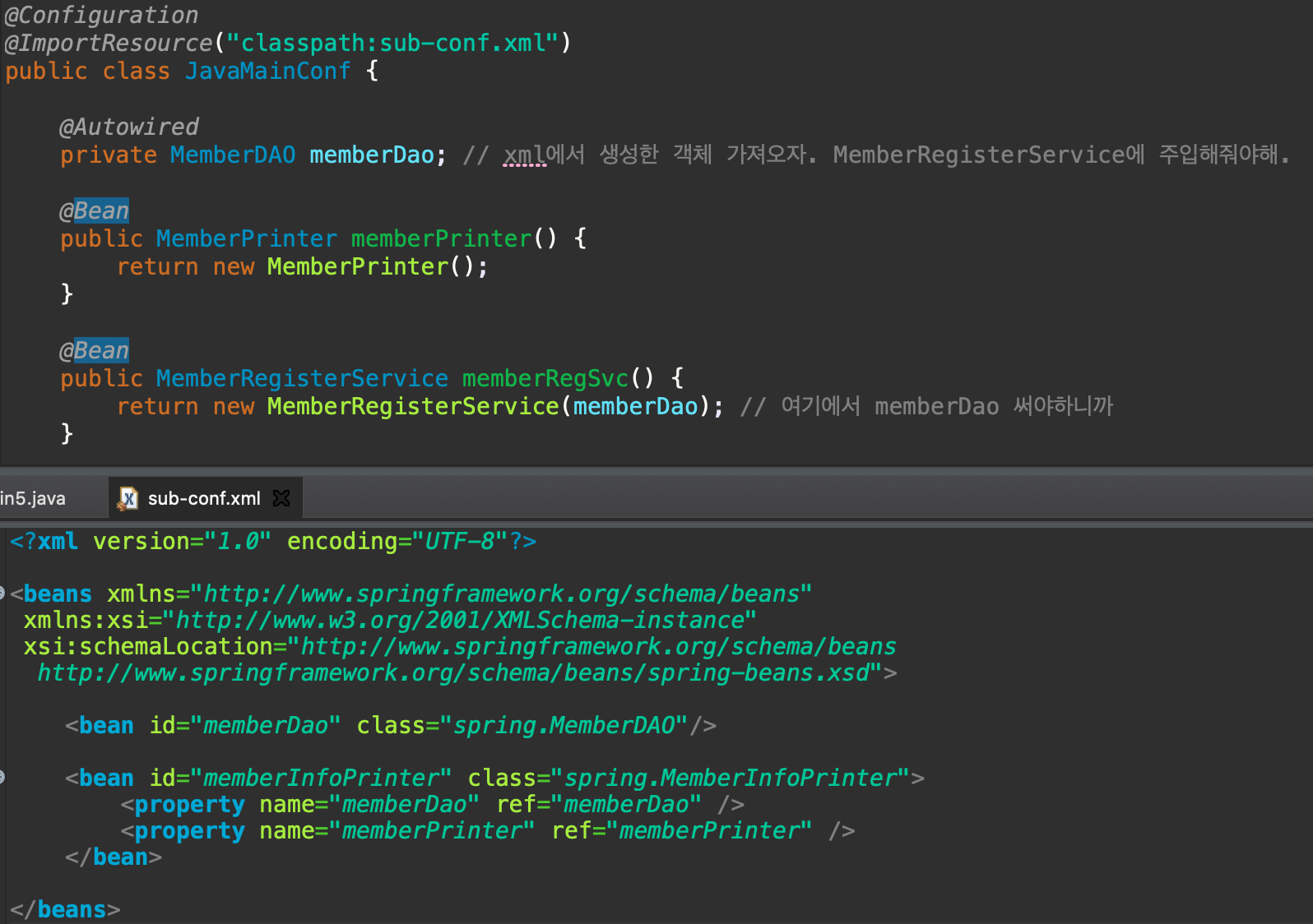 1. 자바 설정 파일을 메인으로, xml 설정 파일을 서브로