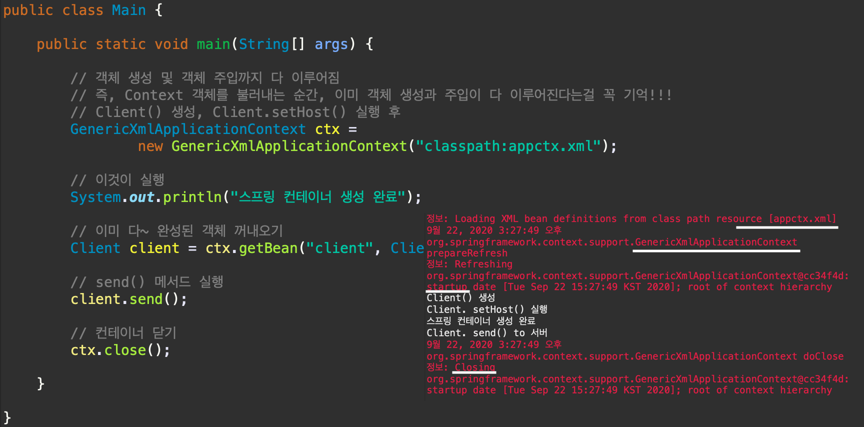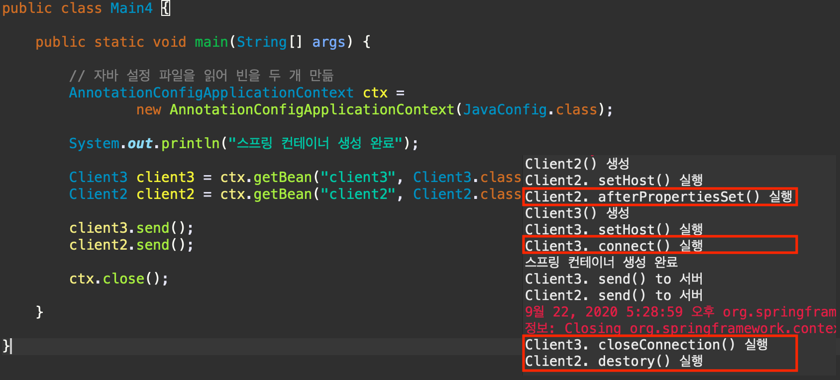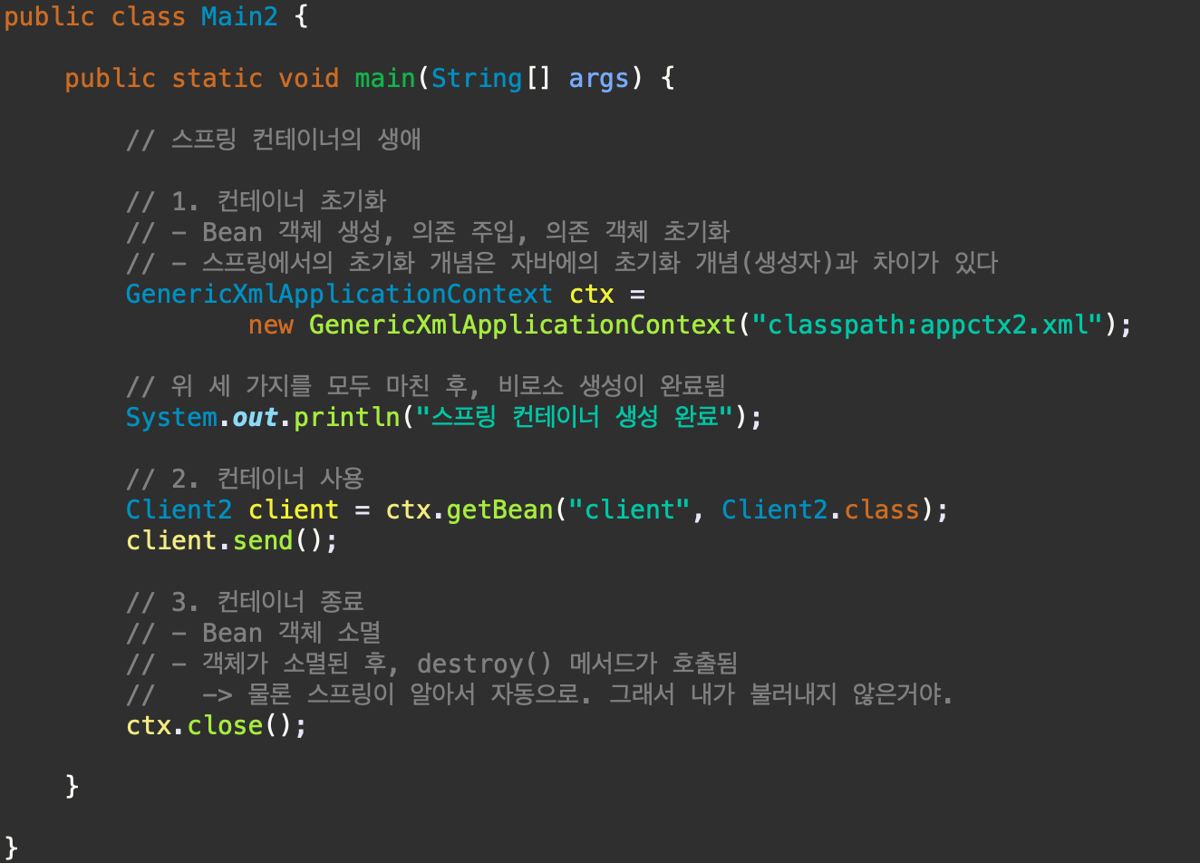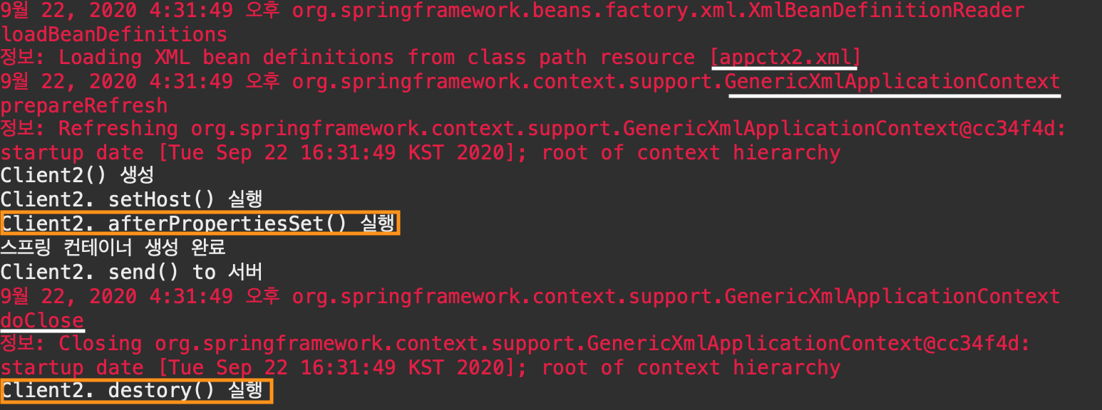 즉, Bean 객체의 생애를 정리하면 객체 생성 -> 의존 설정 -> 초기화 -> 소멸