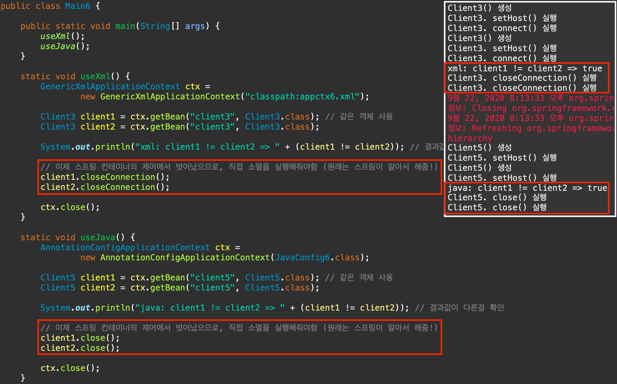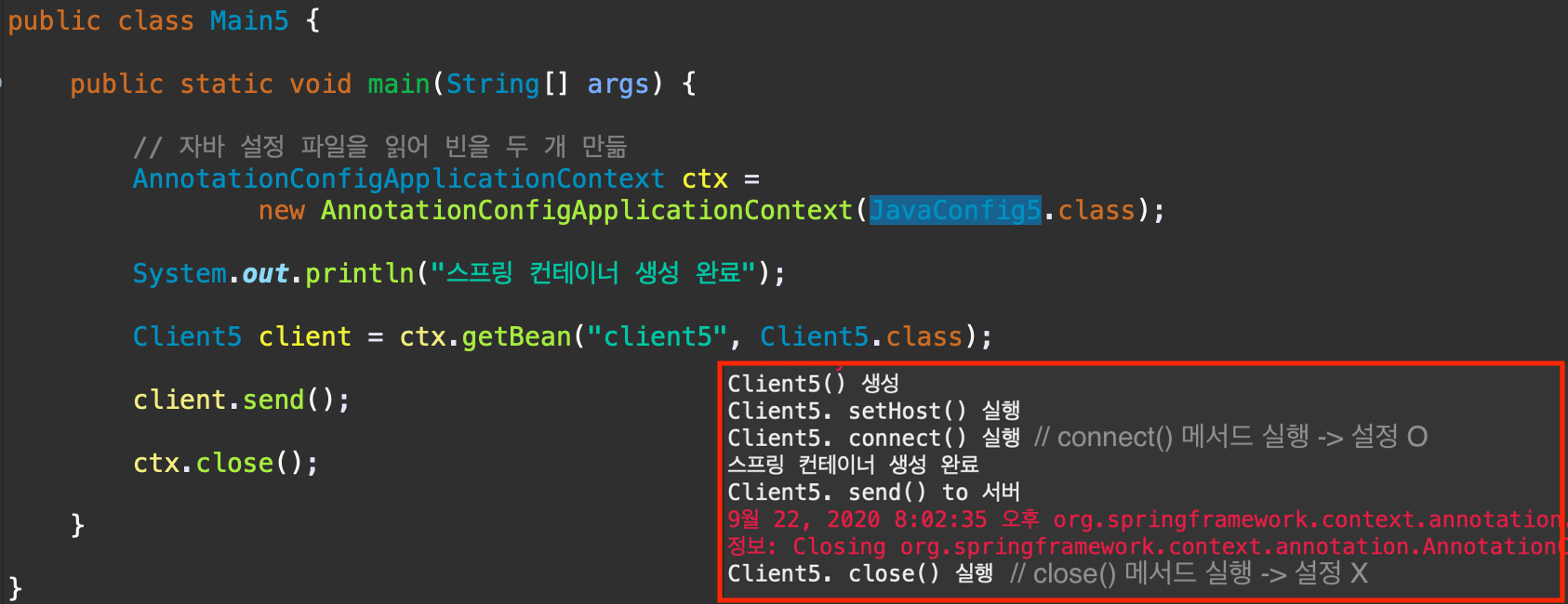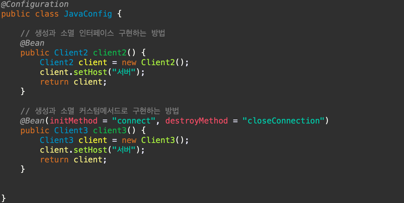 커스텀 메서드를 통해서도 빈의 생성과 소멸을 다룰 수 있다.