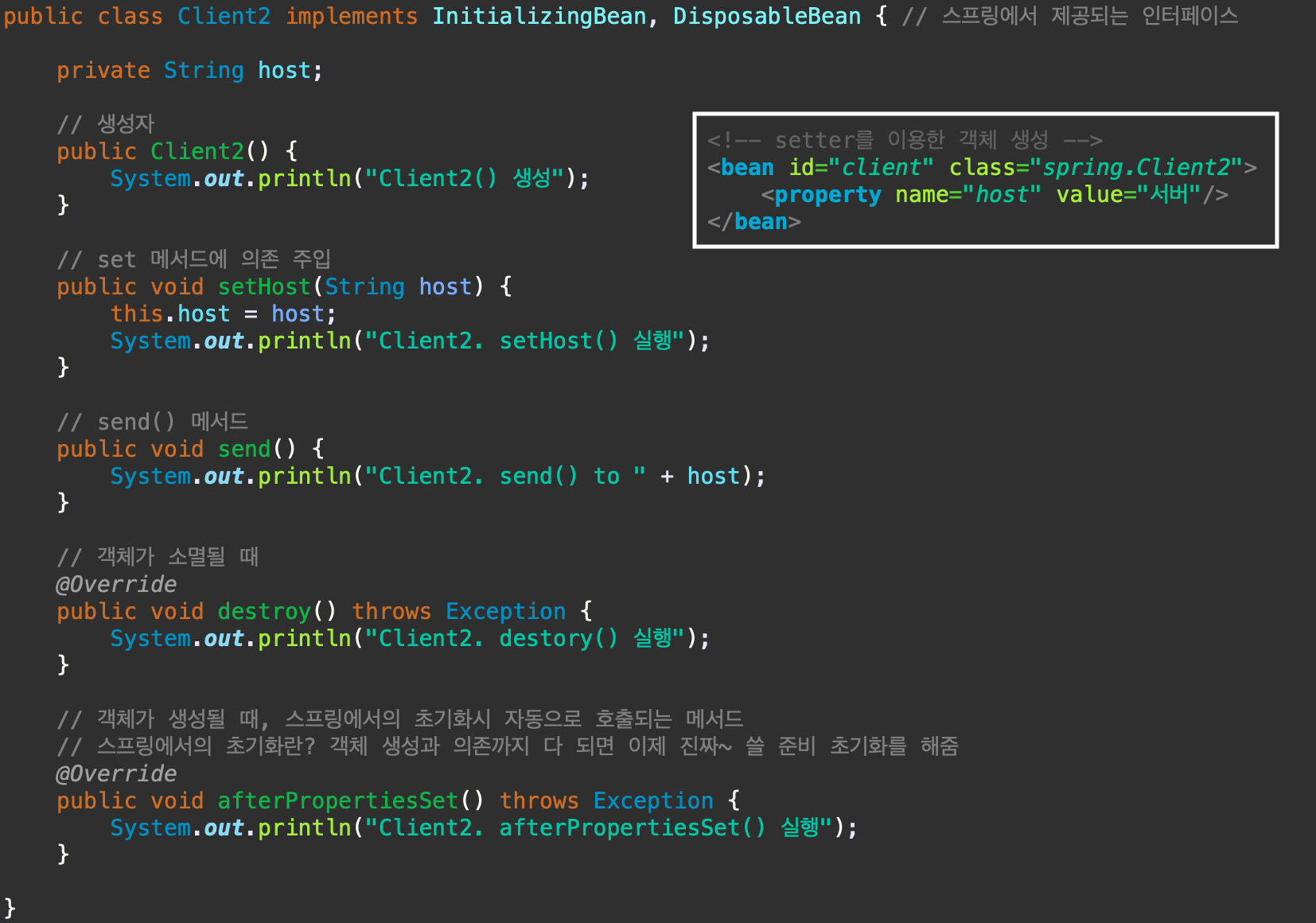 - 객체가 소멸될 때 호출되는 메서드가 정의된 인터페이스 : DisposableBean