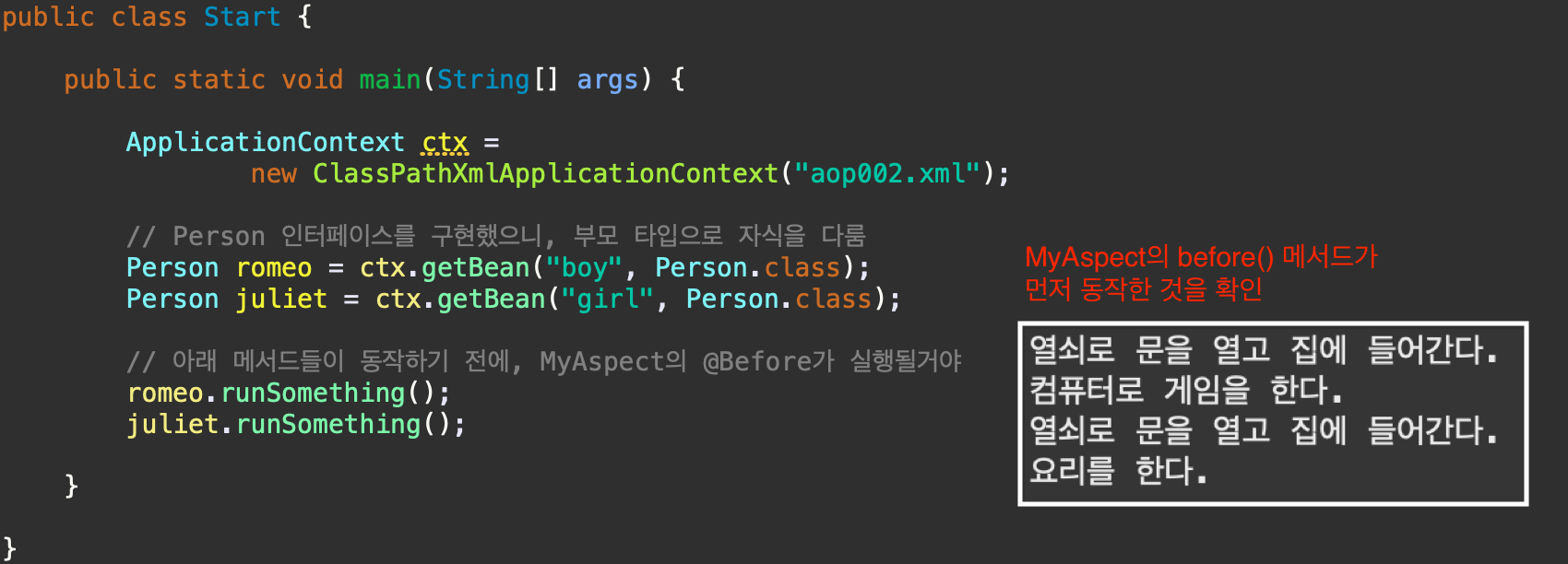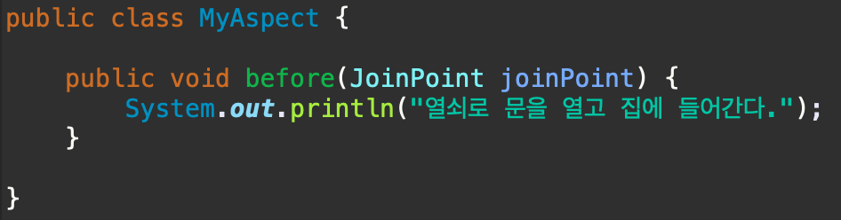 - PointCut : 자르는 지점. JoinPoint 중에 하나(이번 예제에서는 Before)