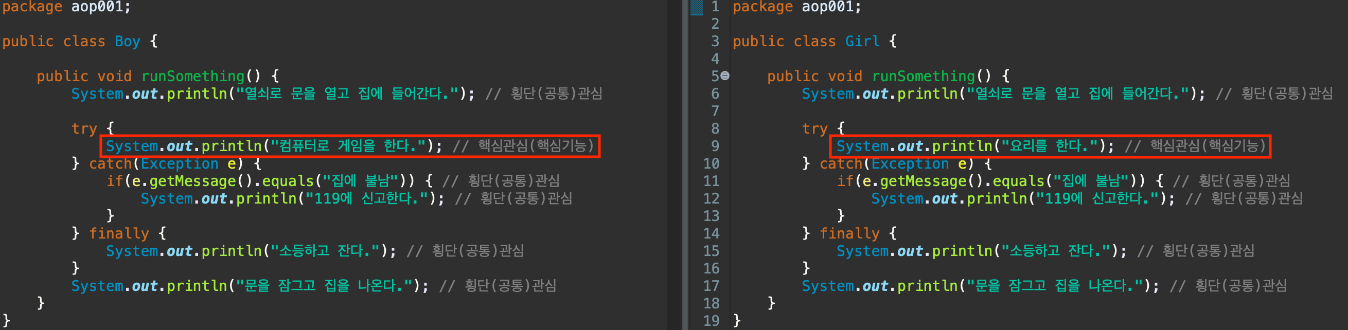 그래서 AOP라는 개념을 활용하면 코드를 수동적으로 바꾸지 않아도 자동으로 추가되도록 할 수 있다.
