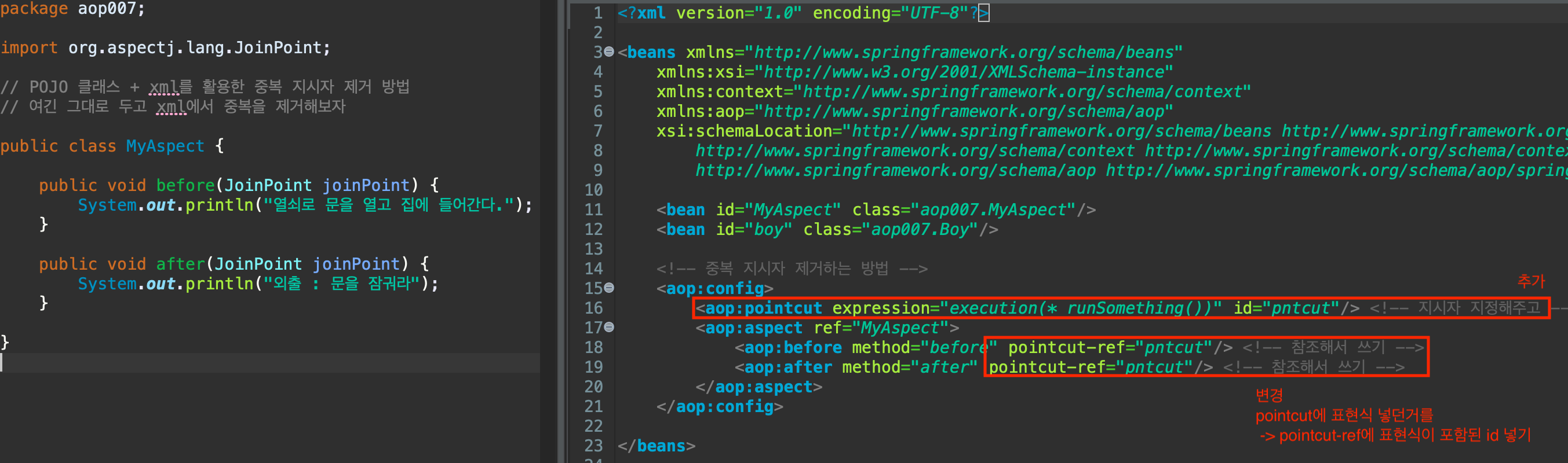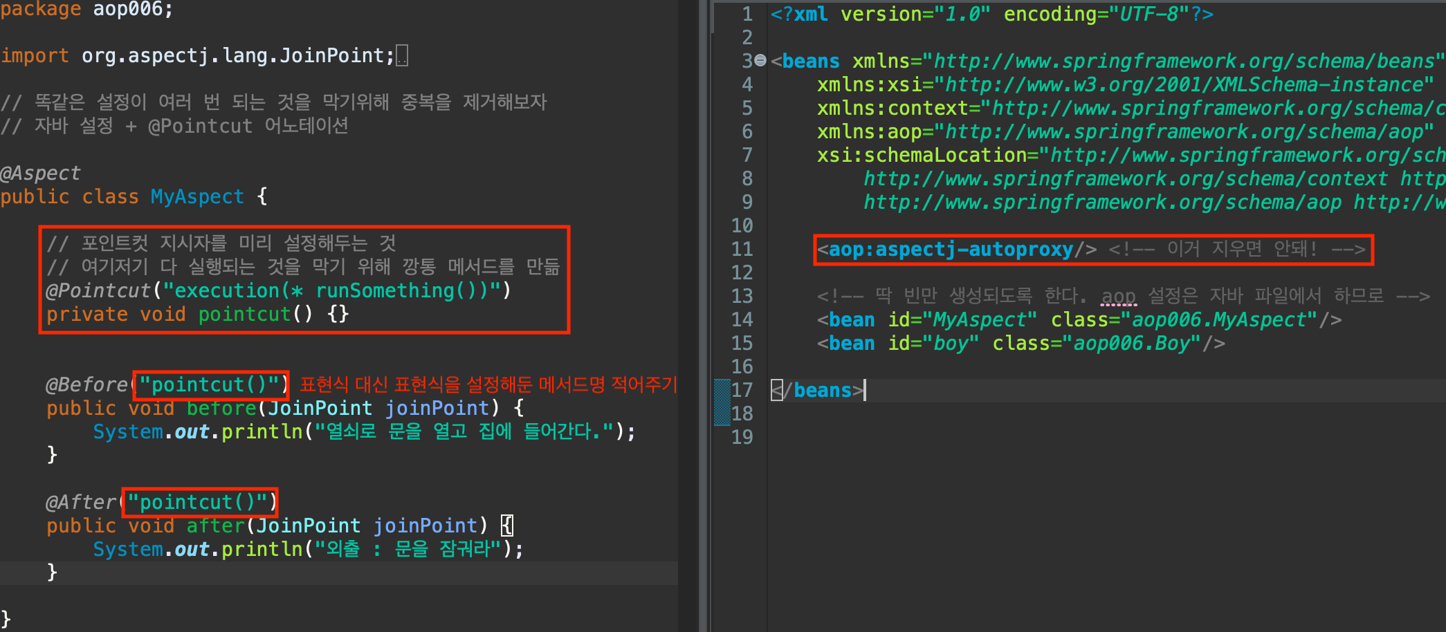 이번에는 중복된 표현식이 계속 되는 것을 방지하기 위해 포인트컷 지시자를 미리 설정해보자.