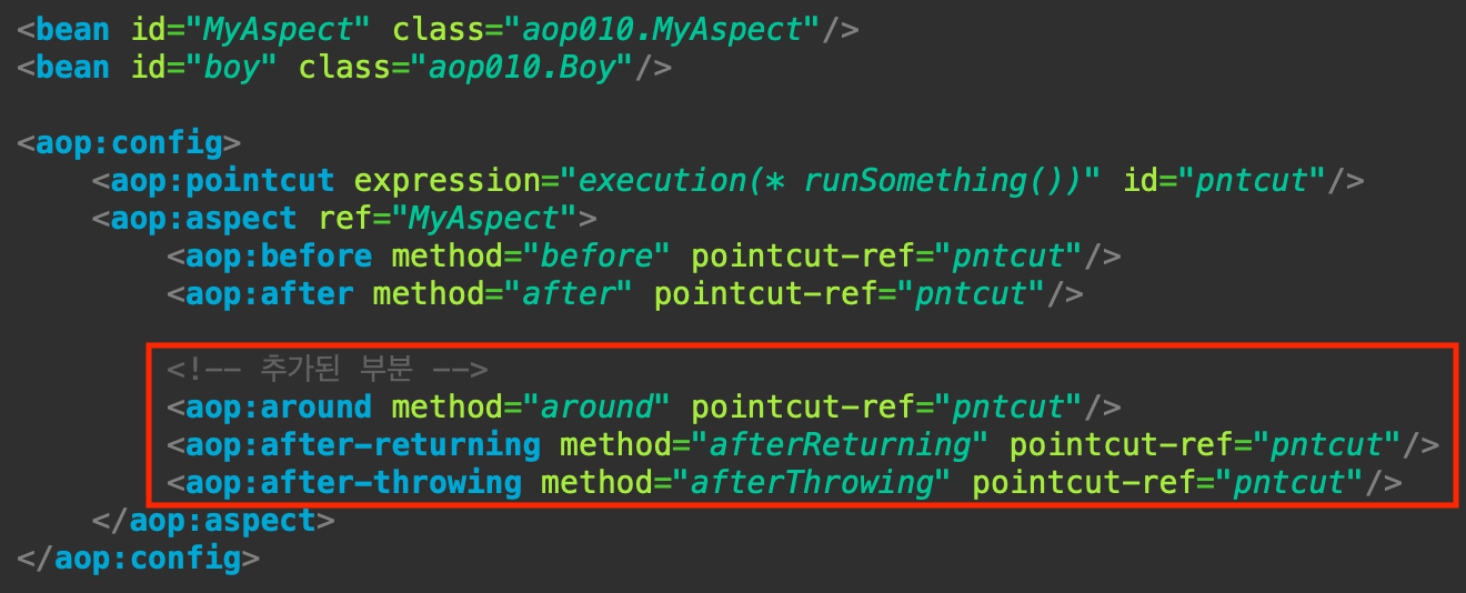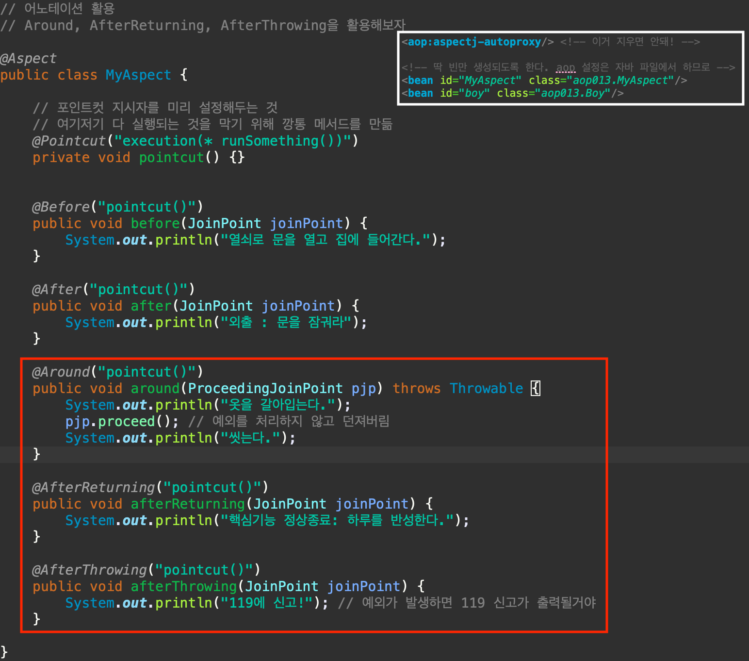 나머지 Around, Afterreturning, Afterthrowing도 적용해보자.